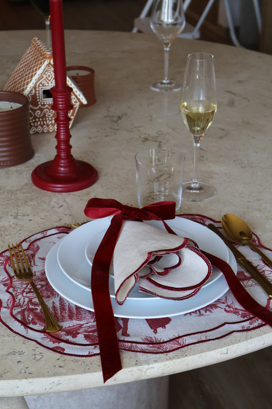 Set de 4 servilletas de lino Sofía Natural/Vino