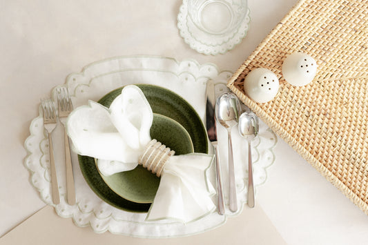 Set de Lino para 4 personas María hueso/verde