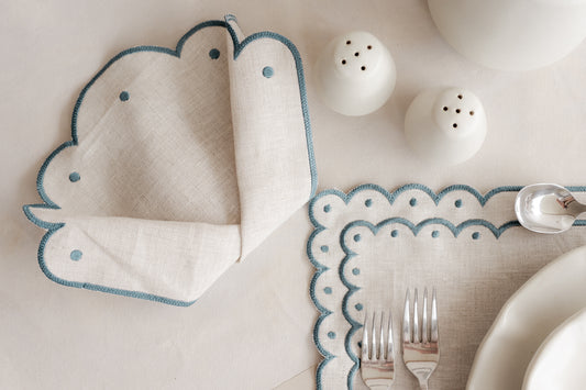 Set de Lino para 4 personas María natural/azul
